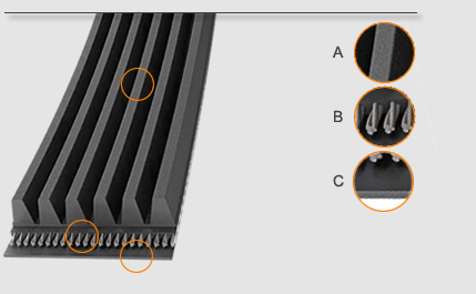 В отличие от обычных поликлиновых ремней, эластичный поликлиновой ремень содержит эластичный корд. Пояс устанавливается под нагрузкой и сохраняет своё натяжение самостоятельно. Ролик натяжителя в приводе не требуется.