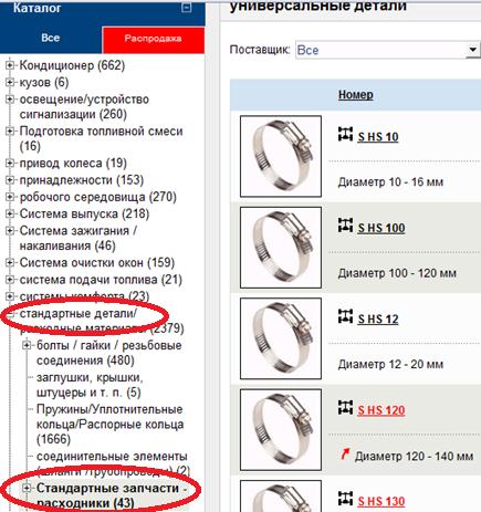 Как найти хомуты в каталоге eCat? Сделать это не так уж сложно – нужно зайти в раздел «Универсальные детали» и в группе «стандартные детали» выбрать подгруппу «стандартные запчасти/расходники».