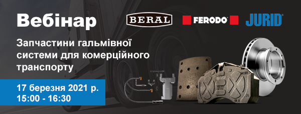Компанія Ferodo разом із відомими брендами Beral та Jurid проводить відкритий вебінар на тему «Запчастини гальмівної системи для комерційного транспорту».