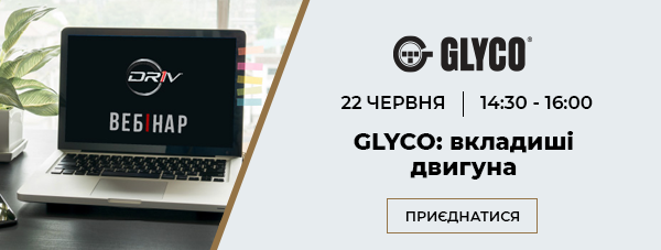 Запрошуємо Вас взяти участь у вебінарі на тему: "GLYCO: (вкладиші двигуна)", який відбудеться 22 червня 2023 року о 14:30.