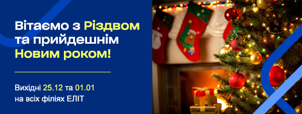 У понеділок, 25.12 та 01.01, на всіх філіях «ЕЛІТ-Україна» вихідний.