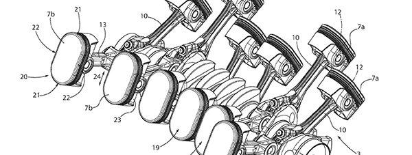 Ще одне нововведення у патенті – конструкція шатунів. Замість класичної схеми, де кожен поршень має окремий шатун, тут вони з’єднані між собою. Це означає, що основа одного штока утворює кришку підшипника для іншого, дозволяючи шатуну змінювати кут відповідно до руху поршня.
