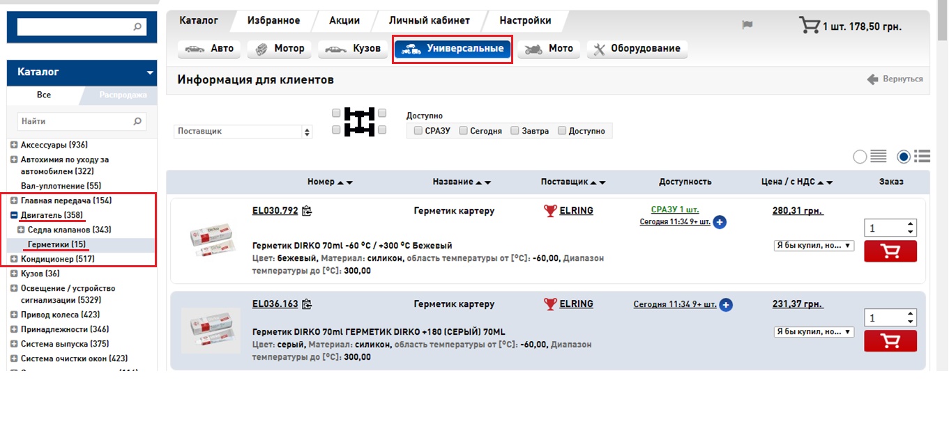 2 февраля 20181) К категории "Двигатель" появилась новая подкатегория "Герметики", которая позволит оперативно подобрать нужный товар из данного сегмента.