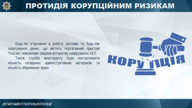 З метою запобігання зловживань та корупційних ризиків, портативний пристрій TruCam містить алгоритм шифрування AES, що робить неможливим втручання в роботу системи та будь-яке корегування даних.