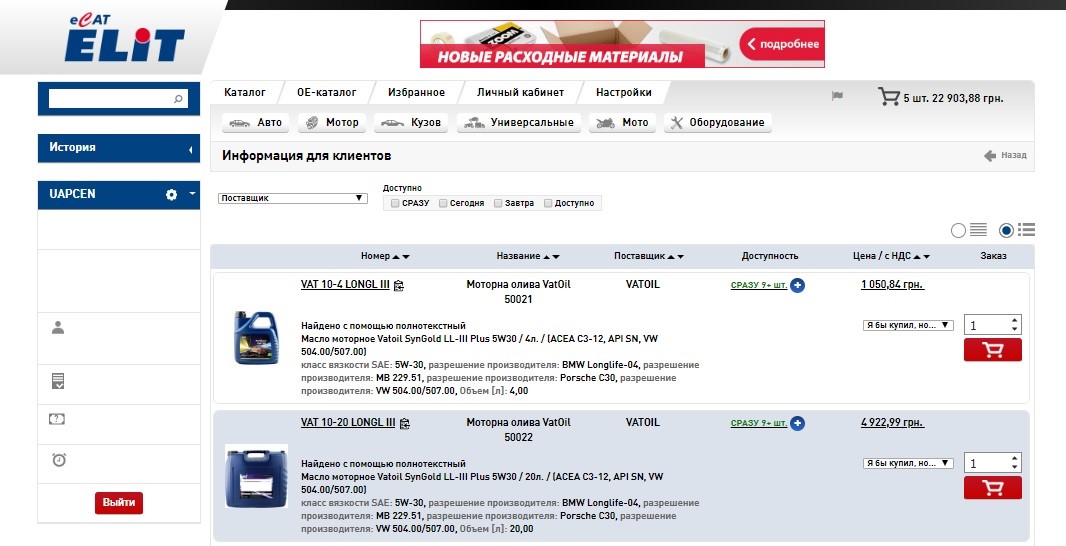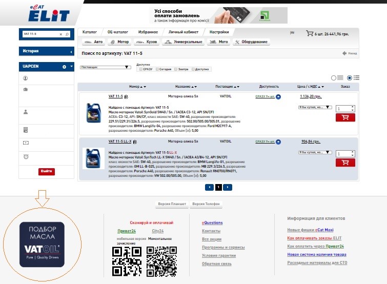 Инновационный сервис подбора масел VATOIL теперь в eCat!