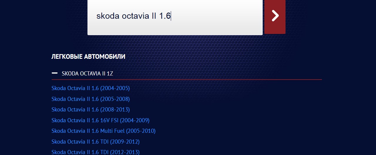 1) Перейдите по ссылке и введите в поле ввода свой автомобиль. Из предложенных ниже вариантов выберете конкретно вашу модель.