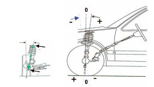 Рис. 3 + 4: Вплив опорного підшипника стійки амортизатора на геометрію осі