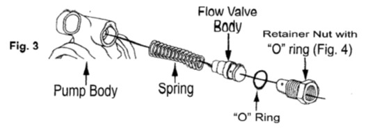 2. извлеките с корпус клапана потока и пружину;