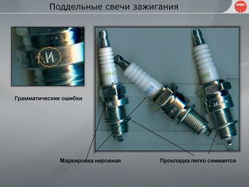 • Изолятор – оригинальная продукция имеет очень гладки изолятор (создается визуальный эффект как от покрытия глазурью). Подделка обладает шероховатым на ощупь покрытием. У клона свечи зачастую можно рассмотреть выступы, идущие продольно, которые остаются на изоляторе вследствие неточной стыковки половиночек пресс-формы;