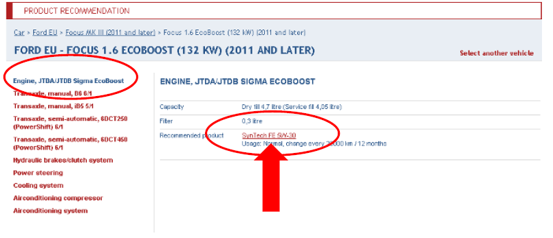 В итоге вы увидите полную информацию о применяемости масел в системах, интересующего Вас, автомобиля.