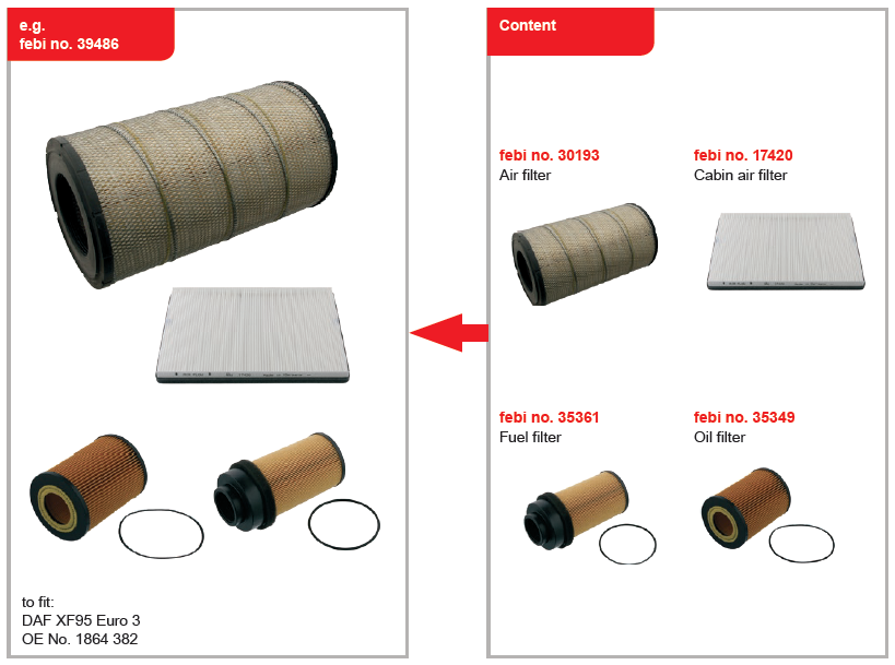 20 вересня 2016Уважаемые клиенты, напоминаем вам о том, что в грузовом ассортименте есть сервиный комплект фильтров FEBI на автомобиль DAF XF 95 Euro 3. Всего под одним кодом товара FEB 39486 вы можете заказать масляный, топливный, воздушный и фильтр салона FEBI