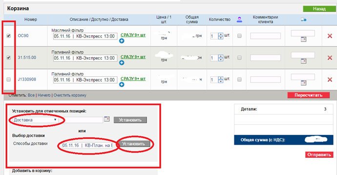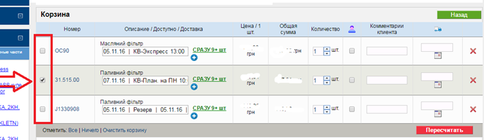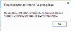 Есть возможность отправить только часть позиций. По умолчанию, если ни одна из строк корзины не помечена, то отправляется вся корзина. Если хоть одна строка помечена, то появляется сообщение о том, что будет отправлена только часть корзины.