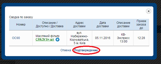 После нажатия пункта «Подтверждение» корзина будет отправлена.