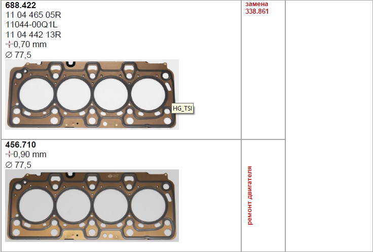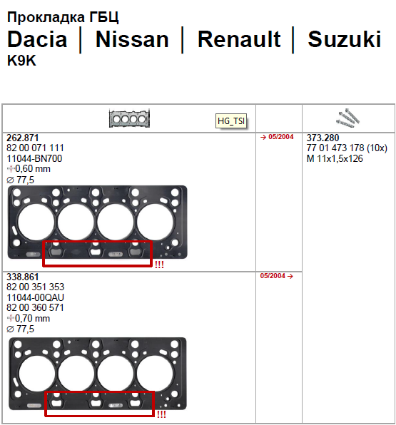 Изменения в прокладке ГБЦ на двигатель RENAULT K9K