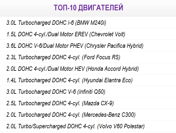 ТОП-10 двигателей 2017 по версии WardsAuto