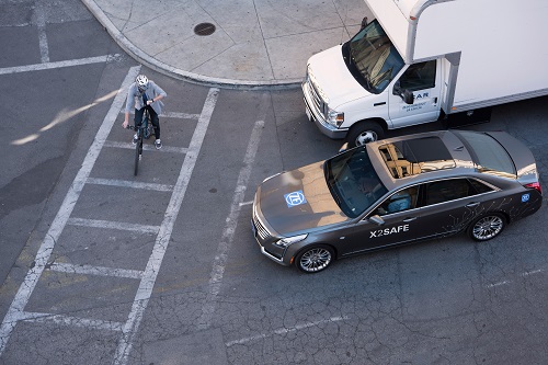 Автомобили и велосипедисты могут быть проинформированы системой X2Safe о возможной опасности в том случае, даже если они пока сами ее не видят.