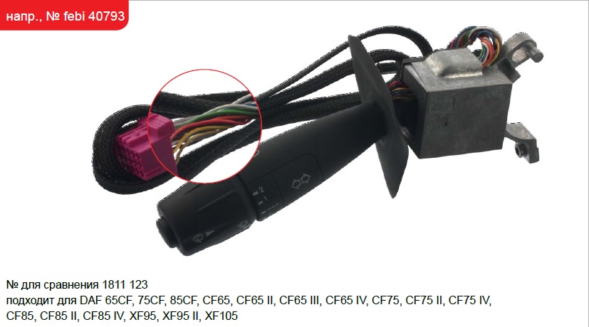 Выключатели на колонке рулевого управления производства febi bilstein не только отличаются высоким качеством, но имеют и еще одно решающее преимущество: цветовую кодировку кабелей (см. увеличенное изображение). В случае поломки электроники в автомобиле поиск неисправности осуществляется по электрическим схемам производителя автомобиля исходя из указанных цветов кабелей.