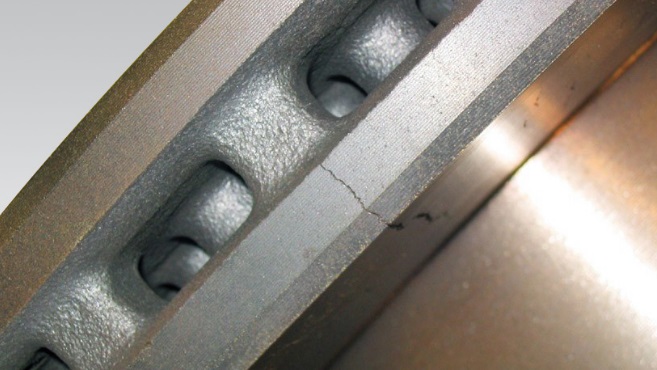Резкие термические нагрузки могут привести к образованию трещин в литой структуре на поверхности фрикционного кольца тормозного диска. Трещины влияют на прочность компонента и могут, в зависимости от размера и нагрузки, быть исходным пунктом для излома материала. Сложно точно определить допустимый размер трещин. Чтобы избежать рисков, тормозные диски необходимо заменить, если трещины хорошо заметны невооруженным глазом. Кроме того, следует принять во внимание тот факт, что риск поломки повышается с увеличением длины трещин.