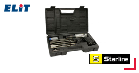 S NP AT2012 | Набор в пластиковом корпусе. Пневматическое зубило с шестигранным зажимом и переменными частотными колебаниями. Кроме того, 5 гексагональных зубил для листового металла. Пружины и канистры для масла |