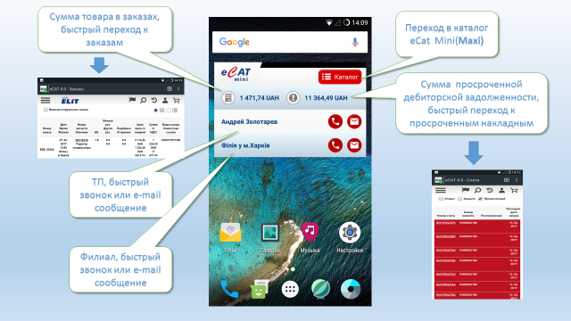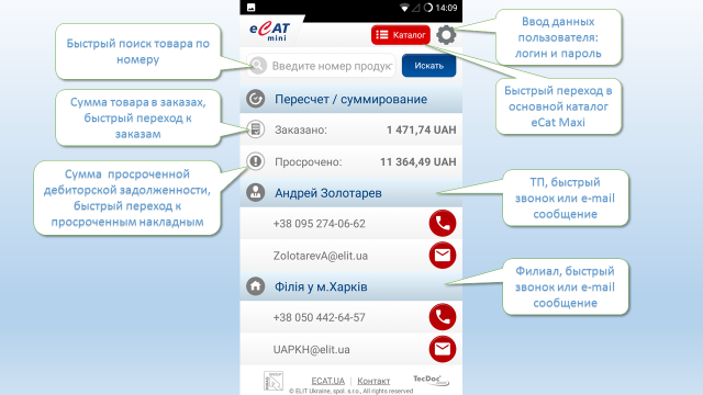 Совсем скоро мы готовы будем представить новую версию eCat – eCatMaxi. Но уже сейчас вы можете пользоваться мобильным приложением, которое позволит Вам на своем смартфоне быстро получить информацию о Ваших заказах, балансе и связаться с Вашим торговым представителем или специалистами Вашего филиала.
