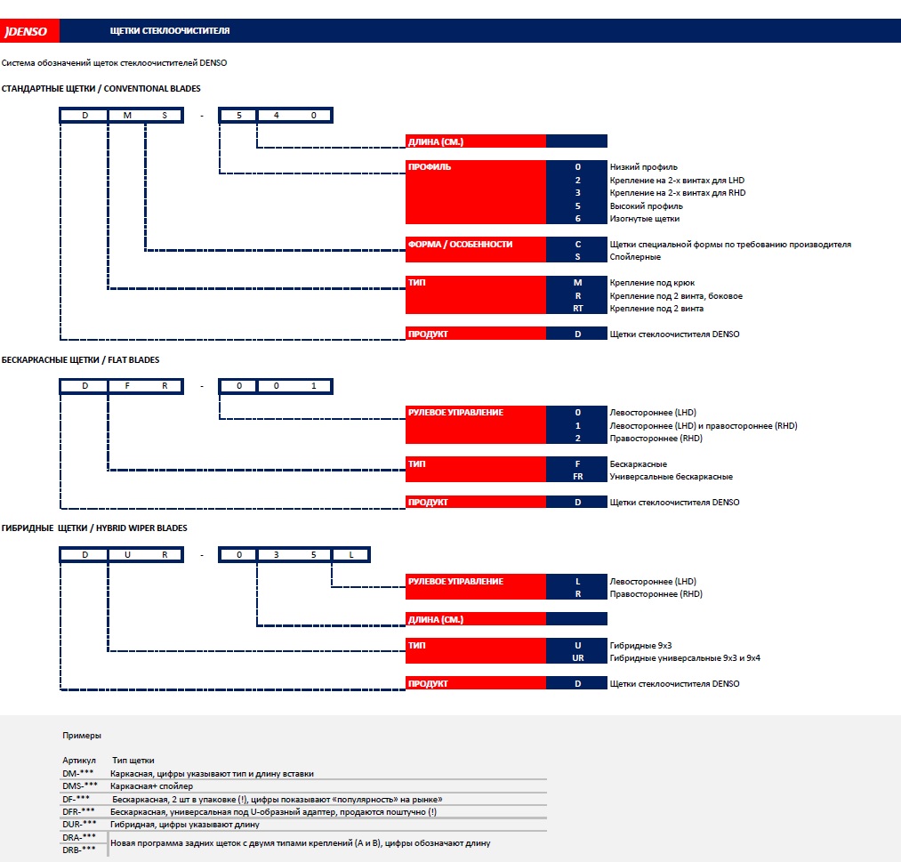 Для того что бы вам легче было понять кодировку стеклоочистителей Denso, предлагаем вам ознакомится с расшифровкой кодов: