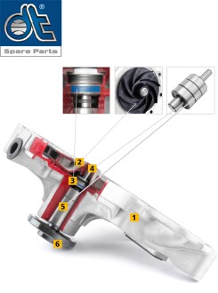 Рабочие колеса водяных насосов марки DT Spare Parts сконструированы оптимально для обеспечения высокой пропускной способности охлаждающей жидкости и достижения высокого КПД. Использовавшиеся раньше литые или стальные рабочие колеса сейчас заменены пластиковыми (PPS, X-TEL). Небольшой вес таких рабочих колес предотвращает образование пустот в жидкостях (т.н. кавитация) и сводит к минимуму нагрузку на подшипники.