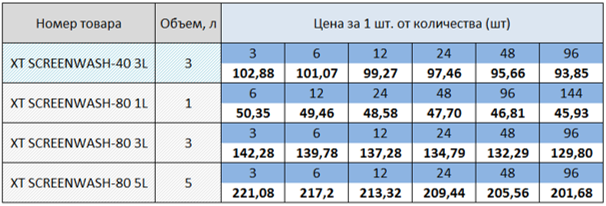 Уважаемые клиенты, сезон морозов уже постучался в дверь, и, по этой причине, мы ввели специальное лотовое предложение по зимним омывателям торговых марок XT Screenwash и Starline. Теперь, покупая больше, вы с можете получить еще больше ценовой выгоды.