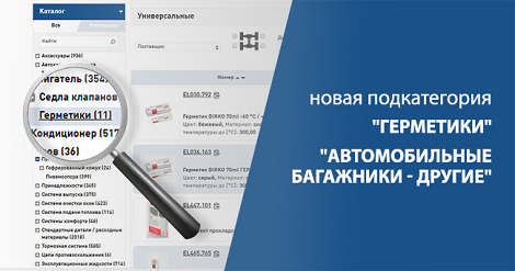 2 лютого 20181) К категории "Двигатель" появилась новая подкатегория "Герметики", которая позволит оперативно подобрать нужный товар из данного сегмента.