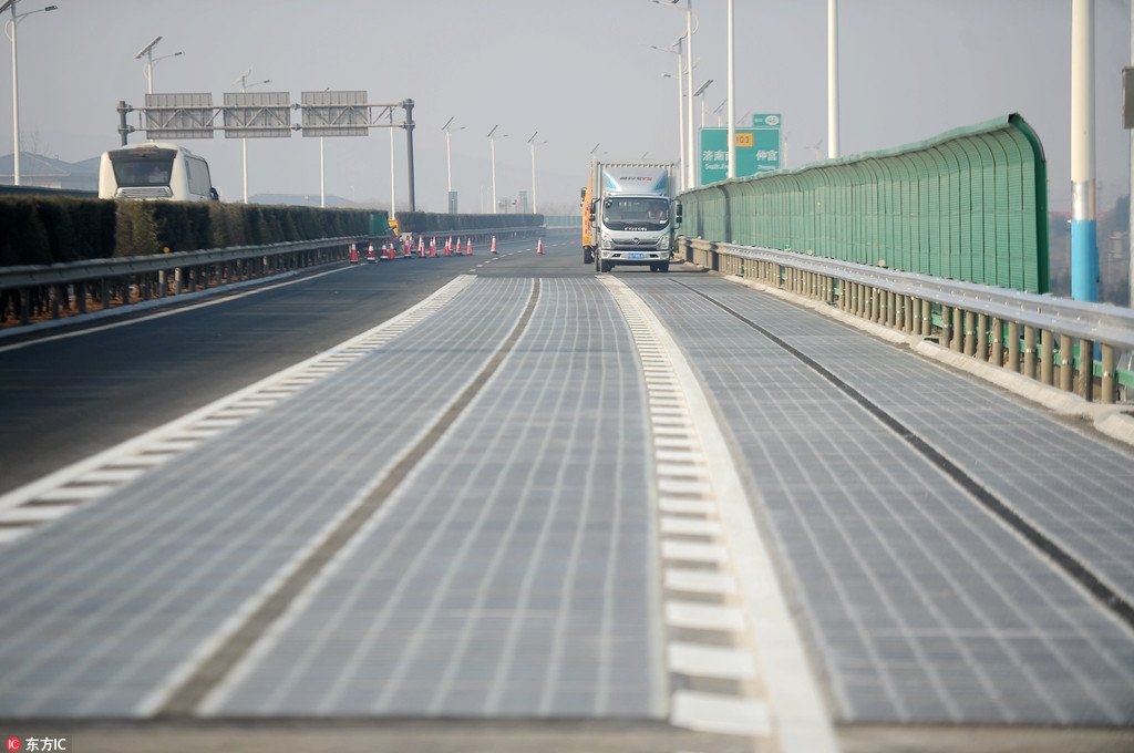 Роком пізніше — у грудні 2017 року — Китай представив свою версію дороги з сонячних панелей: у провінції Шаньдун відкрився відрізок протяжністю один кілометр. Загальна площа дороги, вкритої панелями, складає 5,875 квадратних метрів, кожен із яких коштує приблизно $460. Вироблена ним електрика напряму передається в мережу. Крім того, передбачена можливість заряджати електричні автомобілі. За рік цей відрізок здатен виробляти до 1 млн кВт-год електроенергії, чого достатньо для живлення близько 800 будинків. Для захисту панелей у китайському проекті використовується тонкий прошарок прозорого бетону.