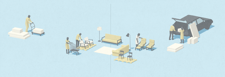 Для того, чтобы выполнять намеченное, в штате IKEA состоят 40 инженеров-упаковщиков, которые вместе с дизайнерами работают над продуктами с первых этапов производства. Дизайнеры презентуют свои идеи, а инженеры думают над тем, как эффективно упаковать каждую деталь и представить конечный продукт в виде пазла. Одним словом, мебель IKEA хороша только в том случае, если ее можно упаковать в плоскую коробку, которая выдержит транспортировку от завода до дома покупателя.