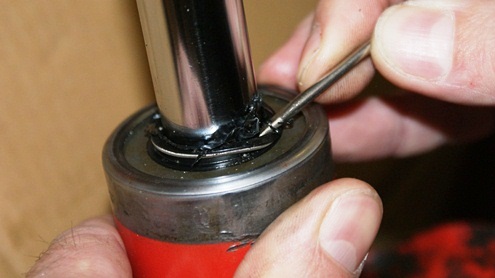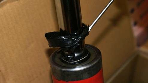 В таких ситуациях автомобиль без проблем покидает место ремонта. Но далее, в процессе последующей эксплуатации, шток амортизатора нагревается, клеевой слой изоленты (скотча и т.д.) смягчается, а затем, под действием силы тяжести и вибрации, отбойник вместе с изолентой постепенно сползает вниз по штоку. Через некоторое время при сжатии амортизатора, отбойник с намотанного дополнительного слоя соскальзывает и начинает «жить своей жизнью». Однако даже не это самое неприятное. Те самые несколько витков изоленты постепенно опускаются по штоку вниз и при сжатии амортизатора попадают под эластичные кромки сальника, поскольку липкий клеевой слой не позволяет виткам изоленты свободно перемещаться относительно штока при соприкосновении с сальником. И как результат – моментальный выход газа (в случае с газонаполненными амортизаторами) и быстрое появление течи масла (в случае с любыми амортизаторами).