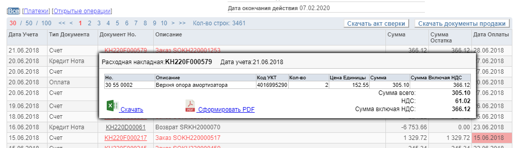 Загрузка накладных так же доступна и по 1 шт. Нажимаем на любой документ из таблицы и выбираем формат файла, если Вы выбрали формат Excel выгрузка происходит моментально, если Вы выбрали формат PDF, то появится сообщение о подготовке документа, после чего отобразится ссылка для скачивания…
