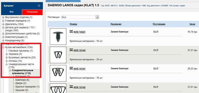 Подбор в eCatпросто – «Кузов автомобиля» - «Универсальные части» - «Соединительные элементы».