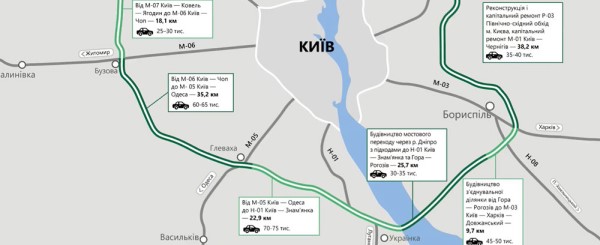 КОД має об'єднати всі міжнародні траси, які зараз транзитом проходять через Київ. Замість раніше обговорюваного «кільця» дорожники побудують півкільце - з одним мостовим переходом на півдні від міста. За словами глави «Укравтодору» Олександра Кубракова, північну частину «кільця» будувати недоречно, тому що зараз трафік на цій ділянці невеликий. А витрати на міст через Київське море величезні - від них вирішено відмовитися.