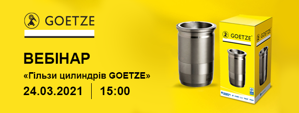 24 березня 2021 року о 15:00 відбудеться вебінар на тему: "Гільзи циліндрів Goetze". Будуть розглянуті такі питання: