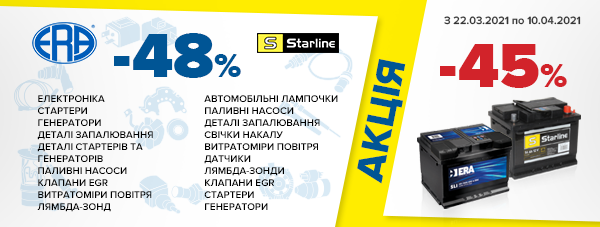 Раді повідомити, що в «ЕЛІТ-Україна» розпочались знижки на продукцію Starline та ERA. Знижки триватимуть до 10 квітня 2021 року включно на групи товарів, що перелічені вище.