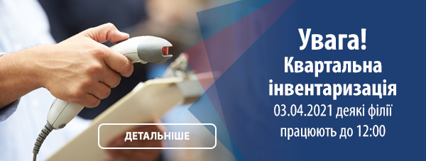 У суботу 03.04.2021 деякі філії ELIT будуть працювати до 12:00. Ознайомитись з переліком філій, на яких буде проводитись інвентаризація можна нижче: