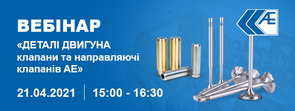 21 квітня 2021 року о 15:00 відбудеться вебінар на тему: "Деталі двигуна клапани та направляючі клапанів АЕ". Будуть розглянуті такі питання: