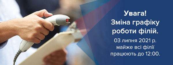 У суботу, 03.07 майже всі філії працюватимуть до 12:00 у зв'язку з інвентаризацією.