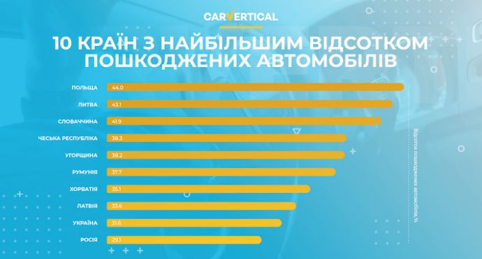 10 країн з найбільшим відсотком пошкоджених автомобілів