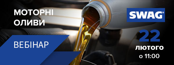 Доводимо до Вашого відома, що у вівторок 22 лютого об 11:00 буде проводитись вебінар на тему: "Моторні оливи SWAG".