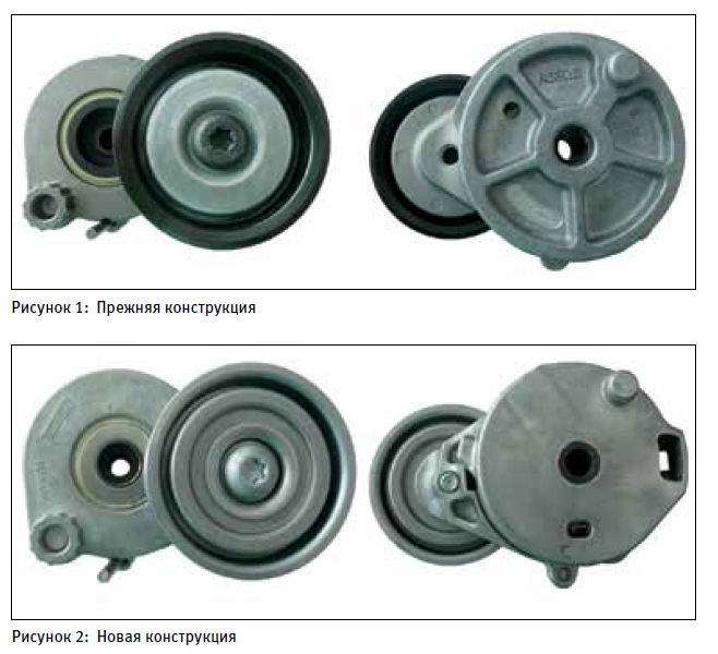 Эта сервисная информация показывает визуальные особенности предыдущей версии (см. рис. 1) и новой версии (см. рис. 2) натяжного ролика.