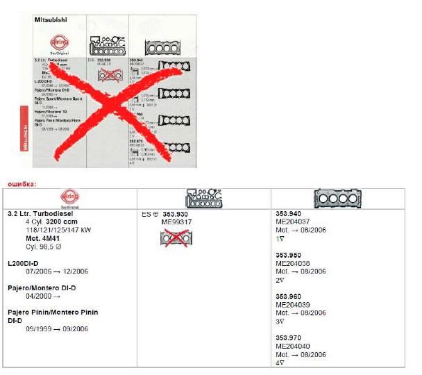 Информация от поставщика Elring. Неточность в каталогах