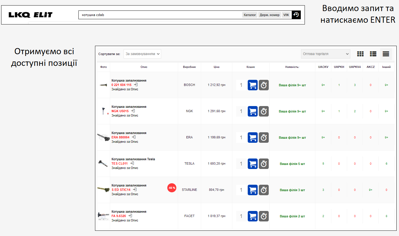 Отже, наша команда модернізувала пошук додатковими можливостями. Розглянемо їх на прикладі свічок запалювання: