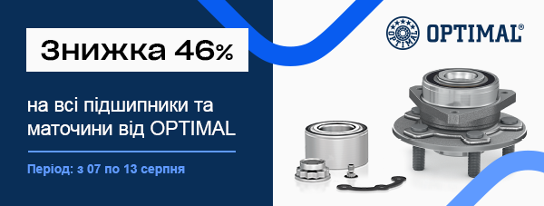 Знижка 46% на всі підшипники та маточини від OPTIMAL