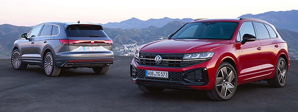 Volkswagen Touareg 2024 впізнається за новими матричними фарами, зміненою решіткою радіатора і збільшеним повітрозабірником у передньому бампері. Ззаду звертають на себе увагу ліхтарі на всю ширину кузова. Салон залишився колишнім, але кросовер Volkswagen отримав поліпшену мультимедійну систему з бездротовими Android Auto Apple CarPlay.
