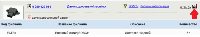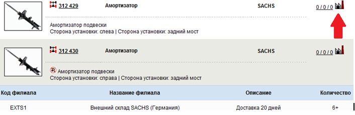Для позиций, которые мы поставляем с внешних складов компании ZF(бренды Sachs, Lemfoerder, ZFparts, ZFlenksysteme) и компании Bosch (только автозапчасти, исключая АКБ), теперь всегда доступна информация о наличии на складе поставщика. Используя эти данные, вы можете размещать заказ. Срок доставки отображается в окне, после нажатия на пиктограмму «склад поставщика» (см. рисунки ниже).