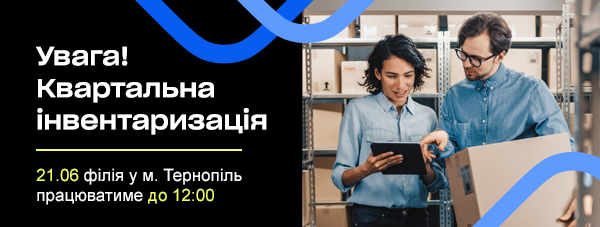 У суботу, 21 червня, філія у м. Тернопіль працюватиме до 12:00 у зв'язку з інвентаризацією.