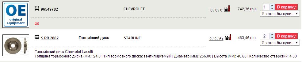 После ввода номера, либо перехода из оригинального каталога отобразится ОЕ деталь в списке: