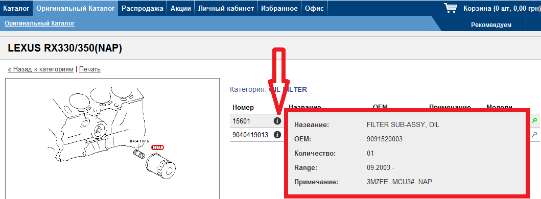 вы можете видеть расширенную информацию о нужной запасной части. Сделать это